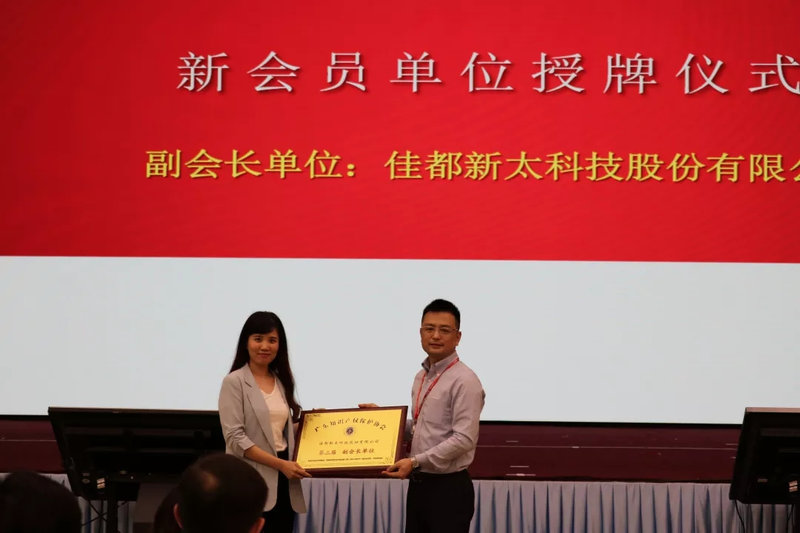 本期沙龙仍有新会员单位授牌仪式,协会陈胜杰秘书长现场为3月份新入会的会员单位代表佳都新太科技股份有限公司颁发会员铭牌。