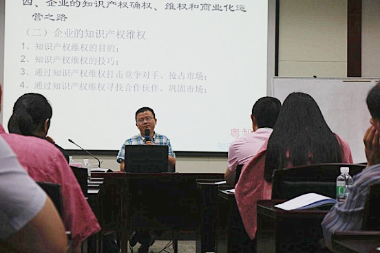 8月16日下午,由广东粤智知识产权运营有限公司董事长胡少波老师为学员授课,授课主题是:知识产权价值评估与知识产权商业化运营。胡少波老师以知识产权是商品的观点切入,结合自身丰富的实务经验和通俗易懂的生活个案,从专利申请、运营、维权等方面详细介绍了知识产权在商业化运营方面存在的问题与解决对策。