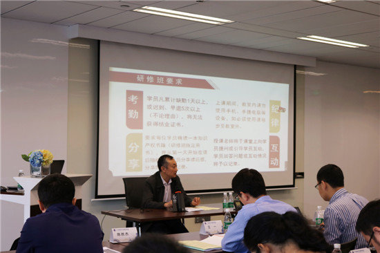 王海波老师给学员讲课《企业知识产权的价值与实现》。