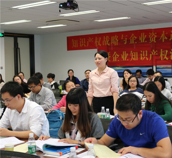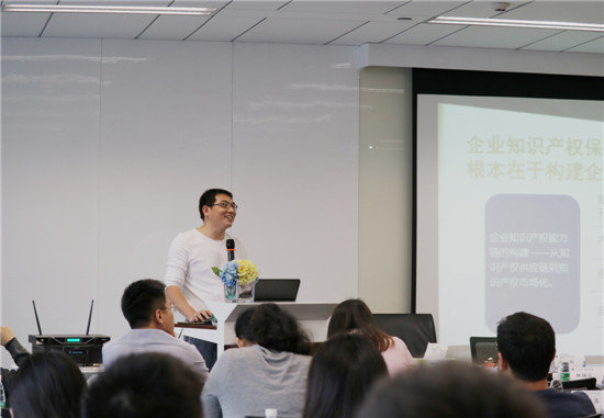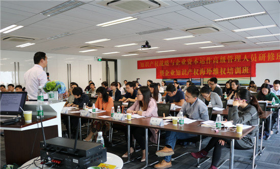 王海波老师给学员讲课《企业知识产权的价值与实现》。