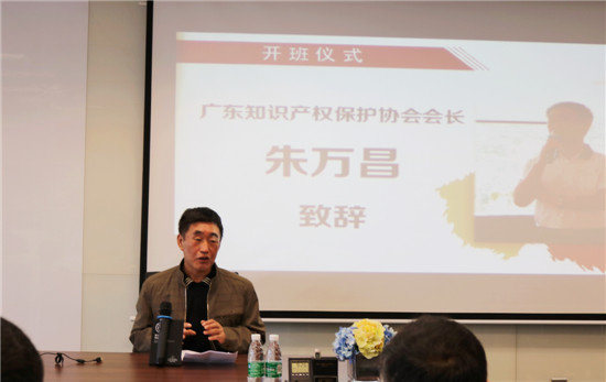 广东知识产权保护协会会长朱万昌为开班仪式致辞。