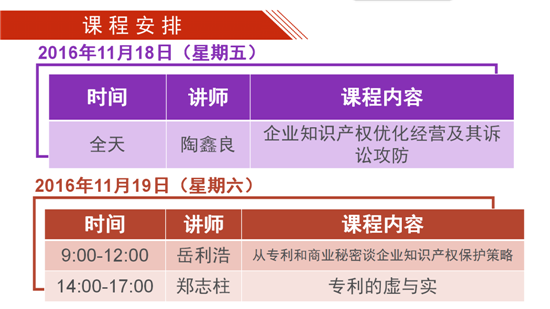 研修班第一轮课程就此结束,其余两轮课程将在11月18—19日、11月25—26日由上海大学知识产权学院院长陶鑫良、广东省高级人民法院民三庭主审法官岳利浩、广州知识产权法院主审法官郑志柱、专利审查协作(广东)中心业务培训室主任刘宏伟、专利审查协作(广东)中心应用化学室副主任肖西祥、广东三环汇华律师事务所主任刘孟斌等六位讲师授课,具体安排请继续关注“广东知识产权保护协会”(微信号:gdippa)的相关通知。