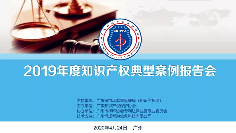 2020年4月24日,第20个世界知识产权日即将到来,为进一步提高知识产权典型案例的宣传效应,充分发挥其示范作用,同时促进会员单位之间的学习交流,提升会员单位的知识产权保护专业水平,在广东省市场监督管理局(知识产权局)支持下,由广东知识产权保护协会主办、广州市律师协会专利法律业务专业委员会协办的“2019年度知识产权典型案例报告会”在广州顺利召开,本次报告会采用线上及线下相结合形式举办。广东省市场监督管理局(知识产权局)知识产权保护处宋炳辉副处长、广东省高级人民法院知识产权庭原副庭长邱永清、广州知识产权法院主审法官丁丽、广东知识产权保护协会朱万昌会长等领导出席报告会。线上线下知识产权行政、司法机关及知识产权服务机构相关人员共730余人参加了报告会。