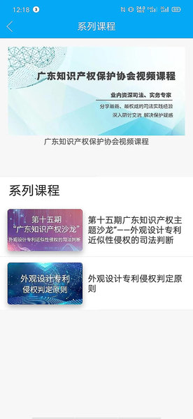 协会日常培训活动包括主题沙龙、省示范申报宣讲、案例报告会等开通线上直播,视频剪辑后上传到“中致学院”APP平台——“广东知识产权保护协会视频课程”栏目。