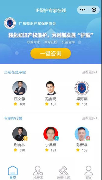 为充分发挥协会专家库的行业作用,提升协会工作质量和服务水平,提供一个方便行业人士对协会专家库进行业务咨询的服务窗口,协会组织开发并推出微信小程序——“IP保护专家在线”。