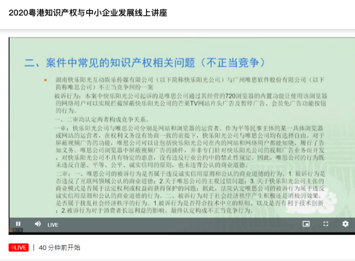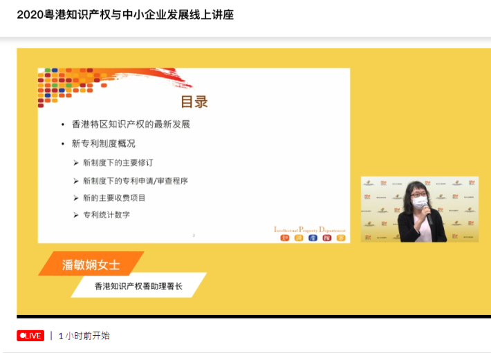 2020粤港知识产权与中小企业发展线上讲座顺利开播