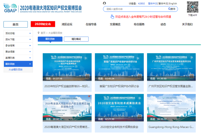 其中,广东知识产权保护协会在2020年10月22日举办的“首届广东知识产权保护协作研讨会”和2020年9月4日举办的“第二十一期广东知识产权主题沙龙——知识产权审判中的技术调查官制度实践”两个活动作为“2020知交会预热期活动”均在知交会平台实现线上播放,在知交会首页“2020知交会”进入“展会服务”中的“精彩回放”即可观看预热期的活动视频。