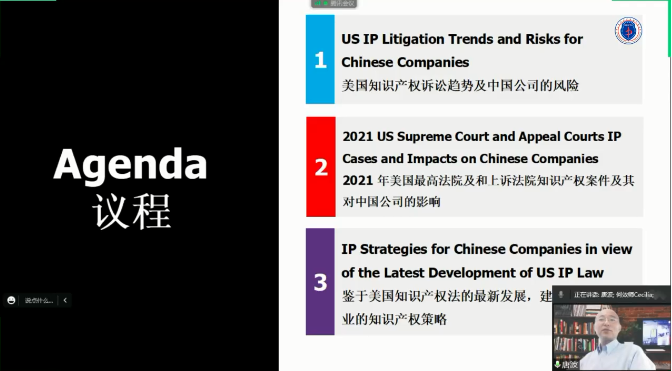 唐波律师从美国知识产权诉讼趋势及中国公司的风险、2021年美国最高法院及和上诉法院知识产权案件及其对中国公司的影响、鉴于美国知识产权法的最新发展,建立适合中国企业的知识产权策略三个方面,深入浅出地介绍了美国知识产权法对中国企业的影响。