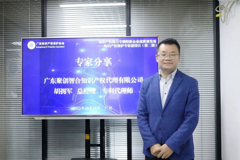 广东聚创智合知识产权代理有限公司总经理、专利代理师胡拥军分享项目完成经验及企业普遍存在的知识产权保护方面问题。