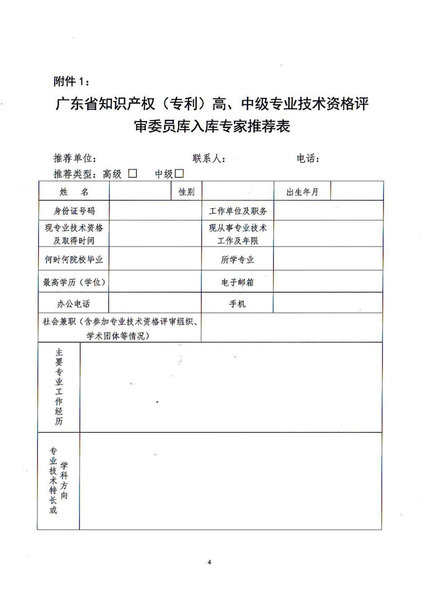 粤知职办发字〔2018〕1号-关于增补广东省知识产权专利专业技术资格评审委员会评审委员库专家的通知
