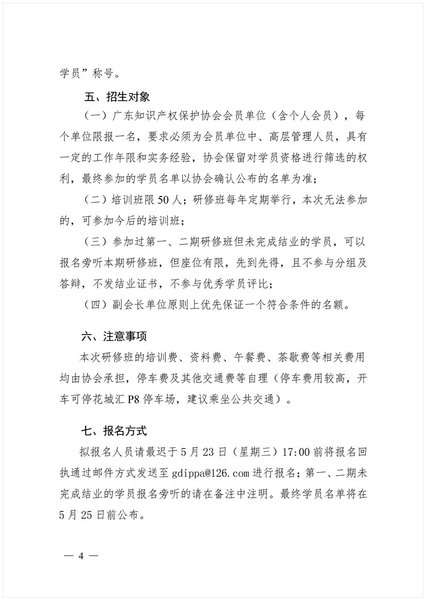 • 广东知识产权保护协会第十期高级管理人员(总裁、总监