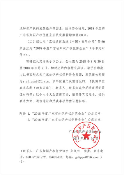 附件2-2018年度广东省知识产权优势企业公示名单