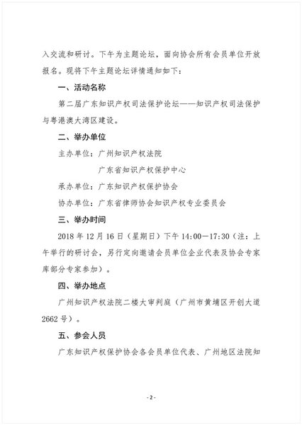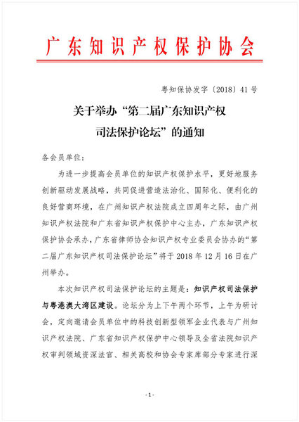 粤知保协发字〔2018〕41号-关于举办“第二届广东知识产权司法保护论坛”的通知