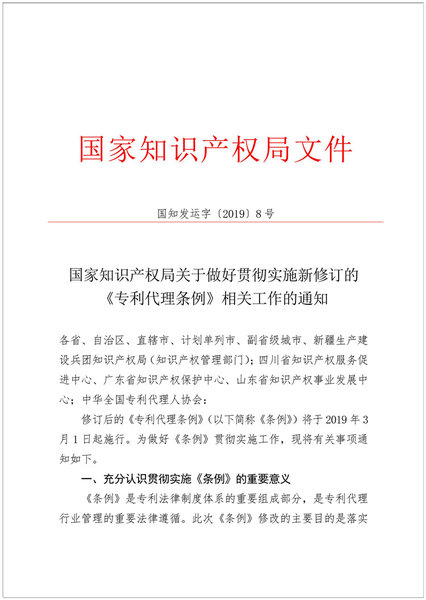 附件:国家知识产权局关于做好贯彻实施新修订的《专利代理条例》相关工作的通知