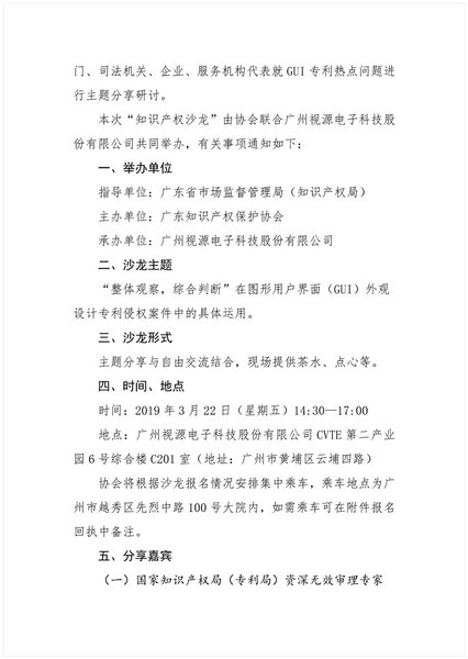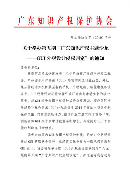粤知保协发字〔2019〕7号-关于举办第五期“广东知识产权主题沙龙”的通知