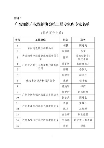 附件:关于聘任广东知识产权保护协会第二届专家库专家的通知
