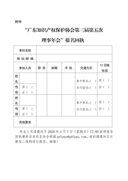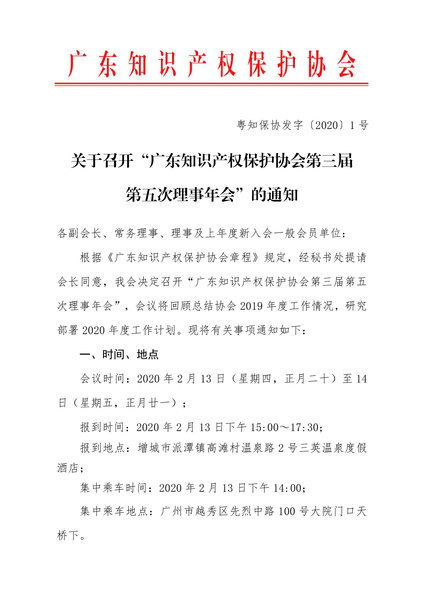 粤知保协发字〔2020〕1号-关于召开“广东知识产权保护协会第三届第五次理事年会”的通知