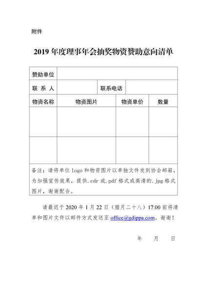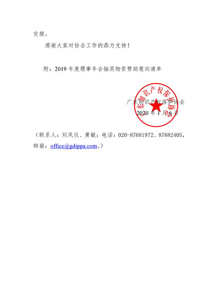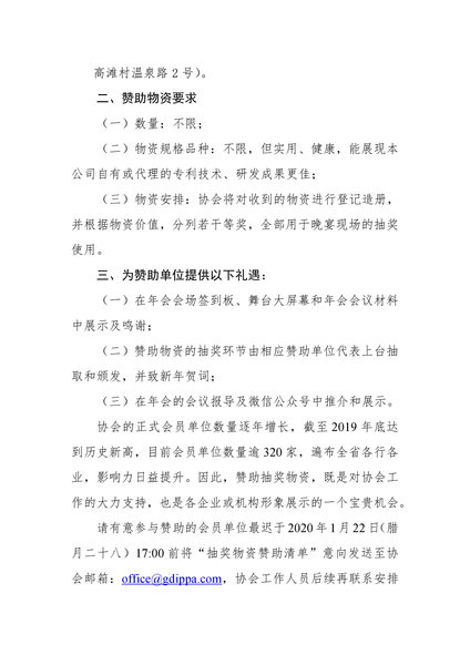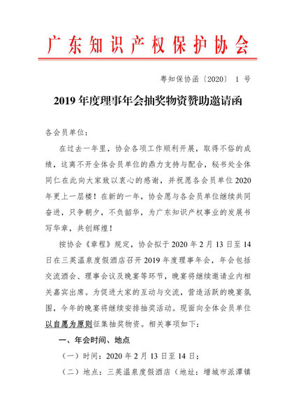 粤知保协函〔2020〕1号-2019年度理事年会抽奖物资赞助邀请函