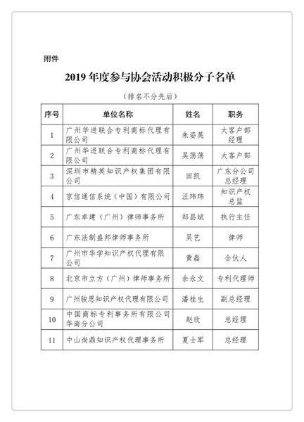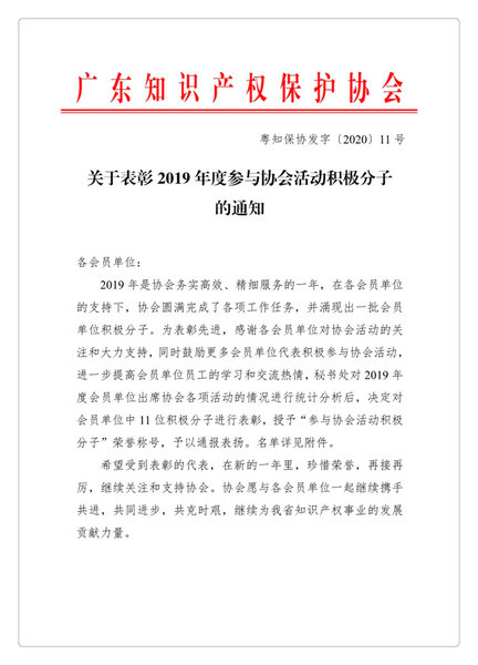 粤知保协发字〔2020〕11号-关于表彰2019年度参与协会活动积极分子的通知