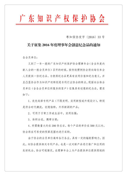 关于征集2016年度理事年会创意纪念品的通知