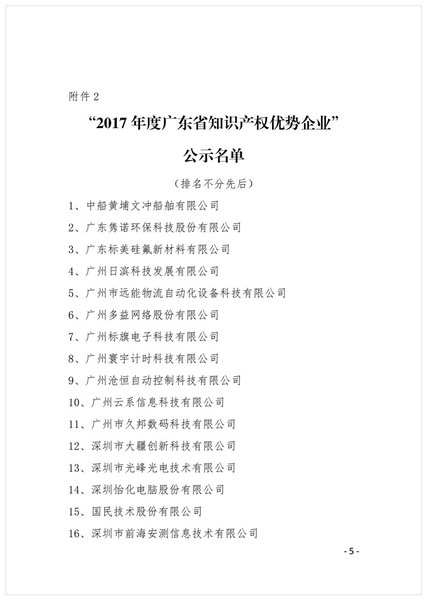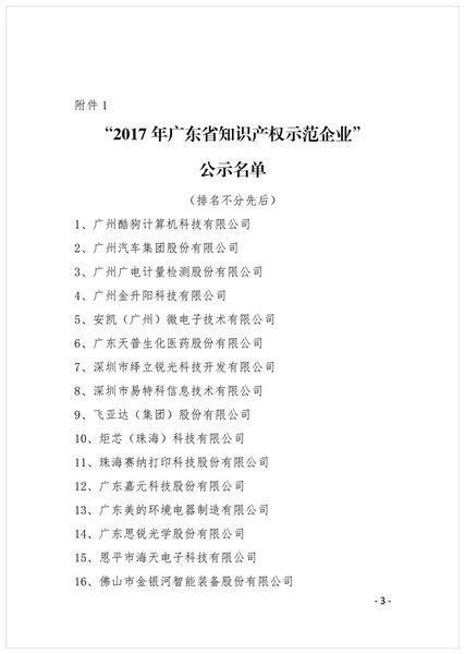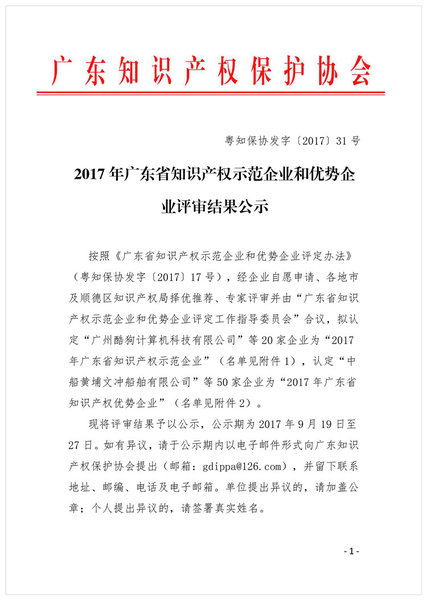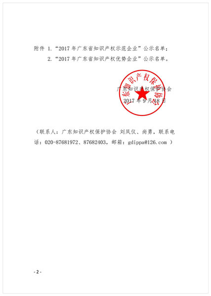 粤知保协发字〔2017〕31号-2017年广东省知识产权示范企业和优势企业评审结果公示