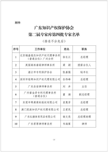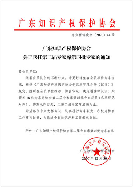 粤知保协发字〔2020〕44号-广东知识产权保护协会关于聘任第二届专家库第四批专家的通知