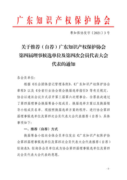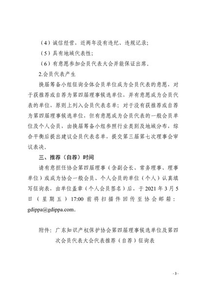 附件:广东知识产权保护协会第四届理事候选单位及第四次会员代表大会代表推荐(自荐)征询表