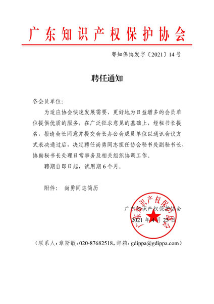 粤知保协发字〔2021〕14号-聘任通知