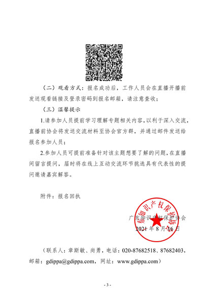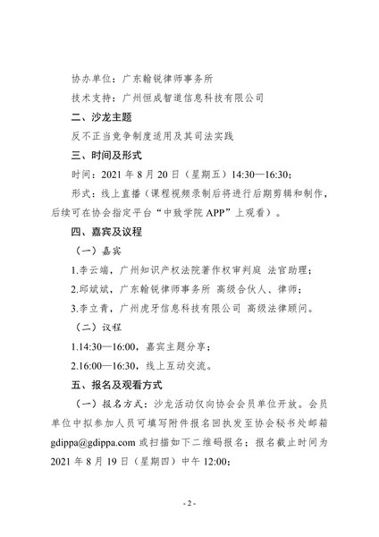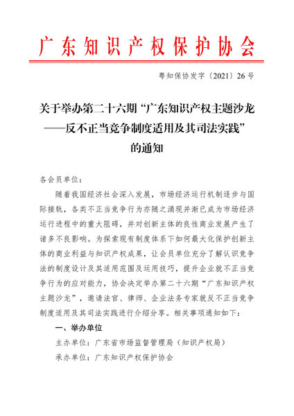 粤知保协发字〔2021〕26号-关于举办第二十六期“广东知识产权主题沙龙——反不正当竞争制度适用及其司法实践”的通知