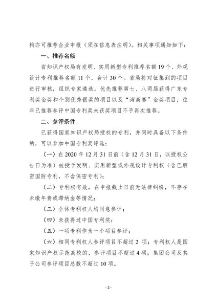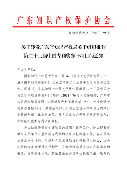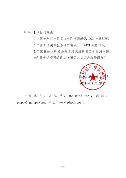 4.广东省知识产权局关于组织推荐第二十三届中国专利奖参评项目的通知(附国家知识产权局通知)