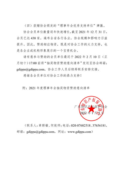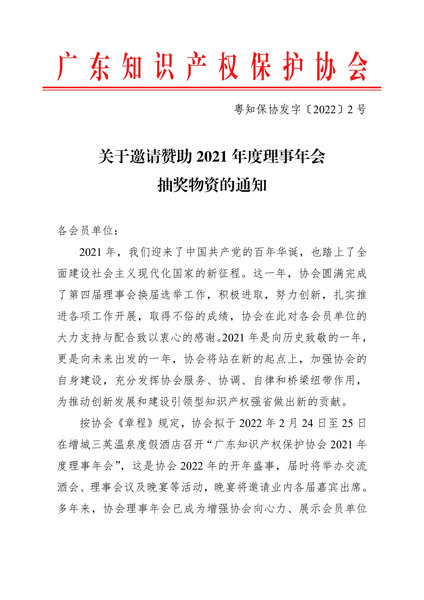 粤知保协发字〔2022〕2号-关于邀请赞助2021年度理事年会抽奖物资的通知