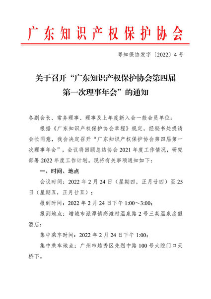 粤知保协发字〔2022〕4号-关于召开“广东知识产权保护协会第四届第一次理事年会”的通知