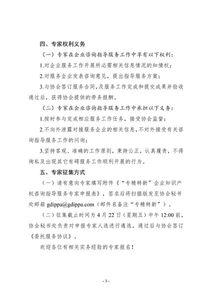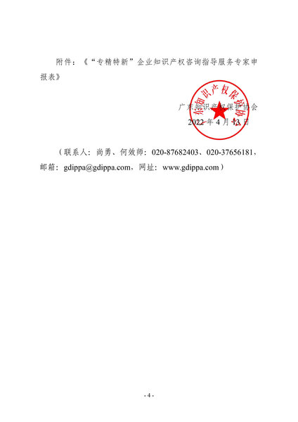 粤知保协发字〔2022〕9号-关于征集专家协助开展“专精特新”企业知识产权能力提升服务工作的通知