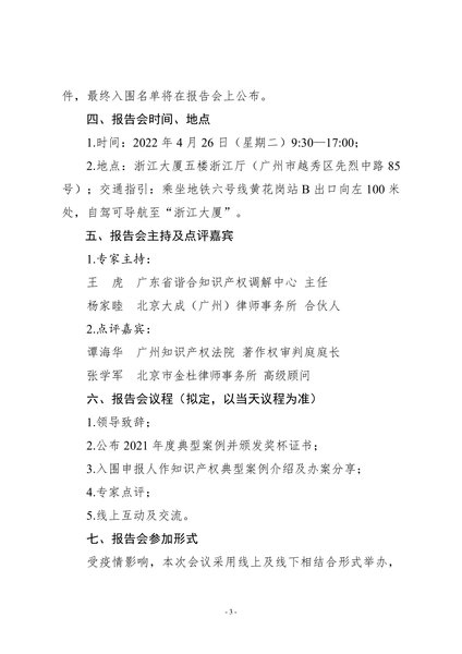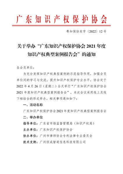 粤知保协发字〔2022〕12号-关于举办“广东知识产权保护协会2021年度知识产权典型案例报告会”的通知