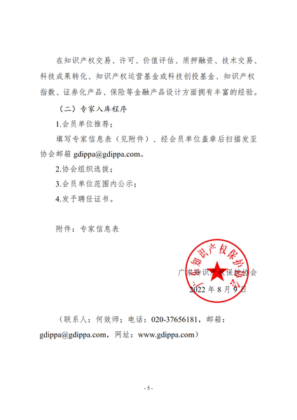 粤知保协发字〔2022〕30号-关于广东知识产权保护协会第三届专家库换届事宜的通知