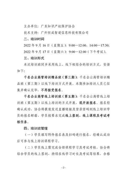 粤知保协发字〔2022〕37号-关于举办“千名企业高管培训精品班(第三期)暨千名企业高管线上培训班(第五期)”的通知