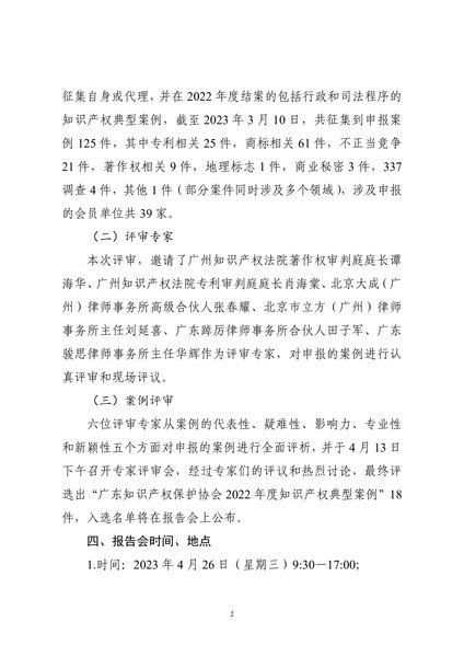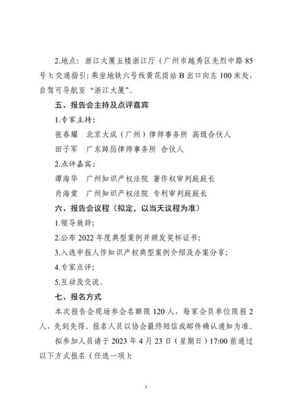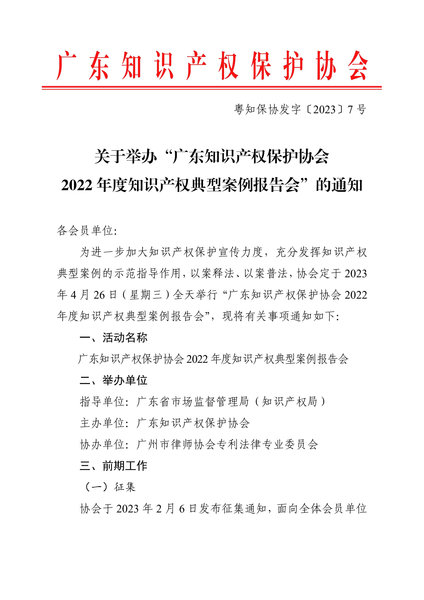 粤知保协发字〔2023〕7号-关于举办“广东知识产权保护协会2022年度知识产权典型案例报告会”的通知
