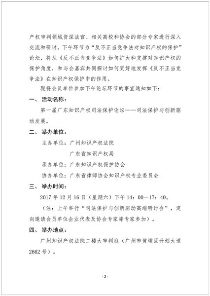 粤知保协发字〔2017〕39号-关于举办“第一届广东知识产权司法保护论坛”的通知