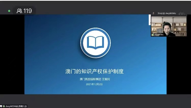 王爱民总经理先从澳门法律制度的前世与今生引入主题,其后从知识产权法律制度、知识产权相关政府部门、知识产权确权、知识产权维权四个方面介绍澳门知识产权保护制度。