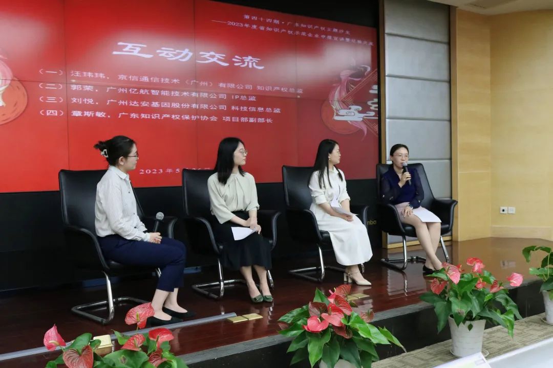 2023年5月26日下午两点,第四十四期广东知识产权主题沙龙在京信通信技术(广州)有限公司举办,广东知识产权保护协会副会长兼秘书长陈胜杰,京信通信技术(广州)有限公司集团高级副总裁李学锋、集团知识产权总监汪玮玮、广州亿航智能技术有限公司IP总监郭荣、广州达安基因股份有限公司科技信息总监刘悦等嘉宾出席沙龙活动。