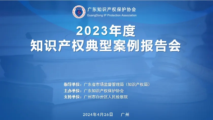 2024年4月26日,迎来了第24个世界知识产权日,在广东省市场监督管理局(知识产权局)指导下,由广州市白云区人民检察院支持、广东知识产权保护协会主办的“2023年度广东知识产权保护协会知识产权典型案例报告会”在广州浙江大厦举办。