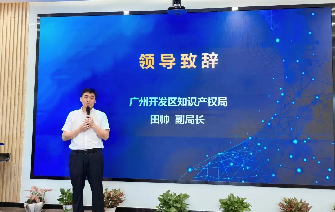 广州开发区知识产权局副局长田帅作开场致辞,他表示,知识产权是科技创新中必不可少的一环。为鼓励企业完善知识产权创造培育,根据“区知识产权高质量发展30条”规定,获评省知识产权示范企业可获一次性扶持15万元,新纳入广东省重点商标保护名录的每件可获一次性扶持5万元。截至目前,已有国家、省级知识产权优势、示范企业近400家,累计纳入省重点商标保护名录约150件。今年以来,区局积极指导高价值专利培育布局中心建设运营,常态化举办“IP 转化营”等品牌活动,认定专利转化、培育等6家公共服务平台,推广海外侵权责任险、海外专利申请险等多样化险种。1-7月,全区专利授权量12185件排名全市第一,其中发明专利同比增长36.2%;同期,PCT国际专利申请量418件,占领全市半壁江山。