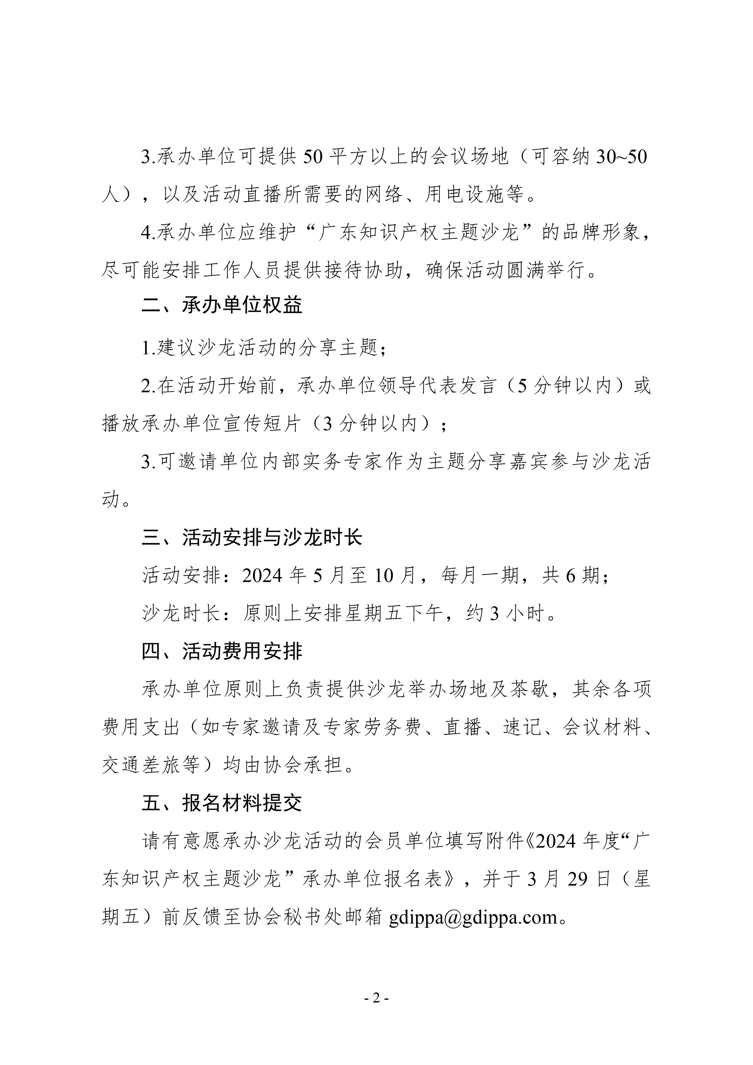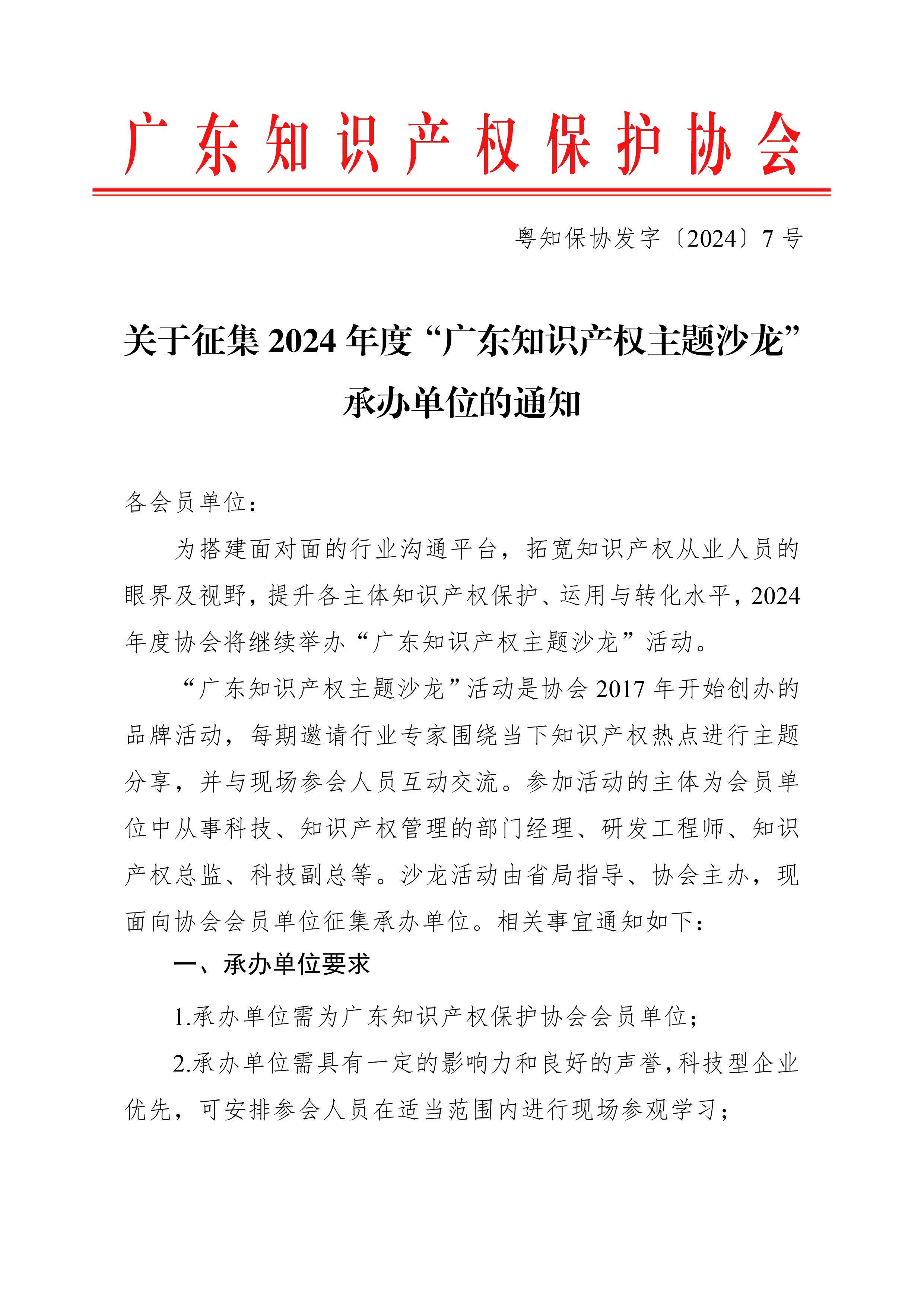 粤知保协发字〔2024〕7号-关于征集2024年度“广东知识产权主题沙龙”承办单位的通知