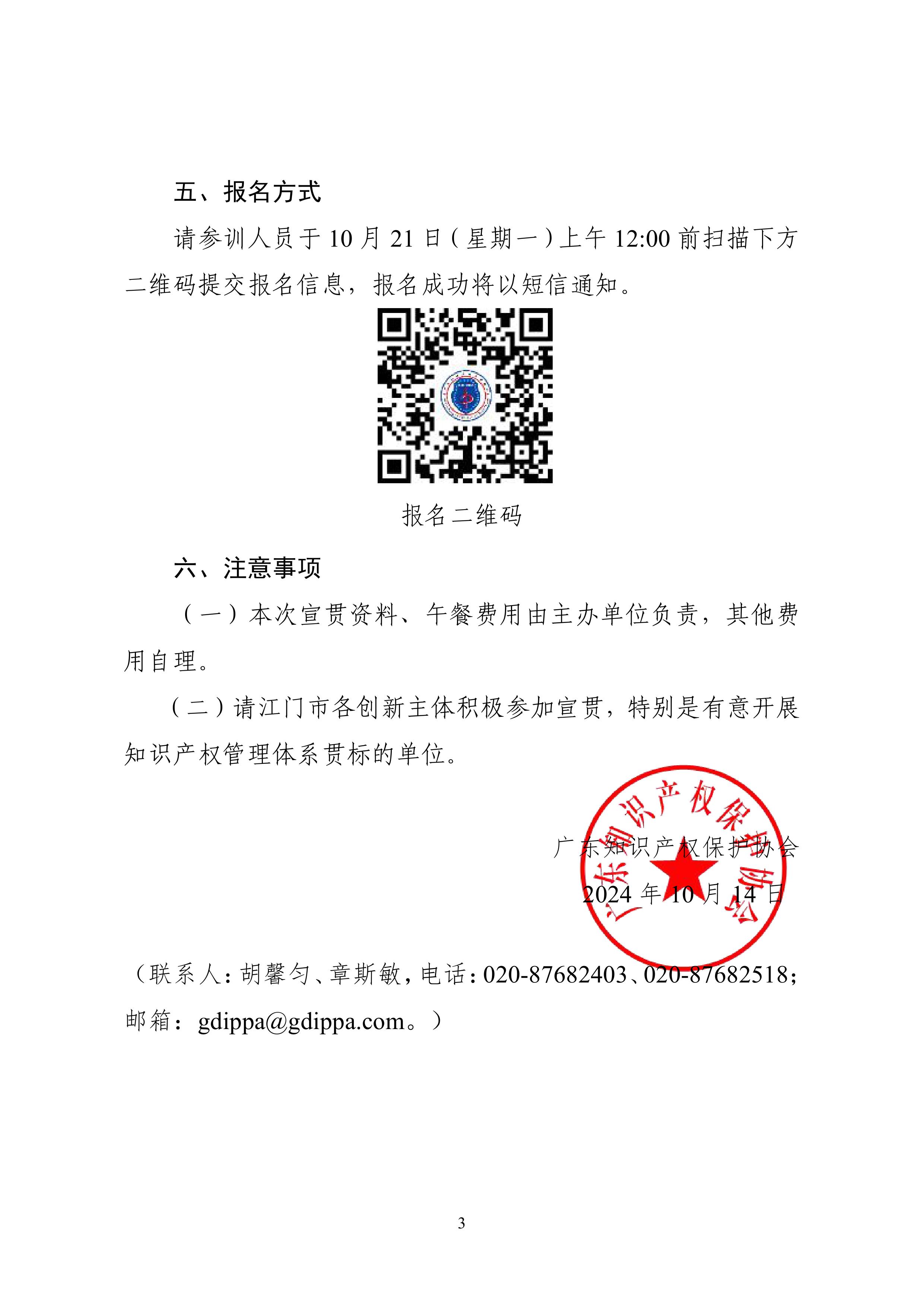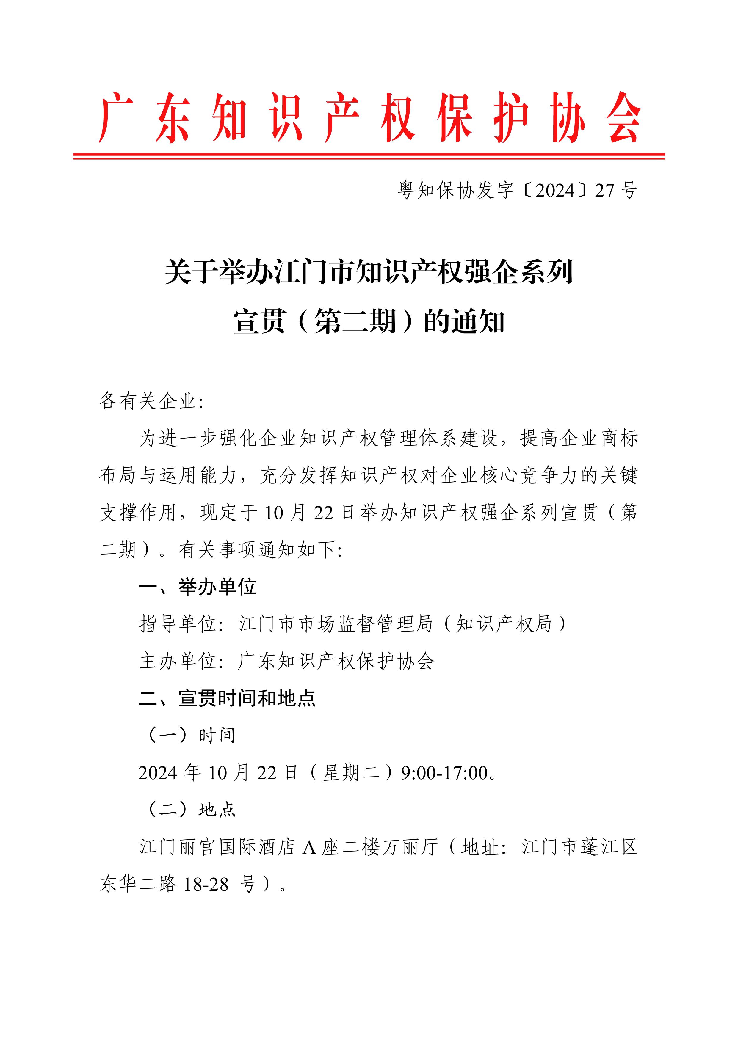 粤知保协发字〔2024〕27号-关于举办江门市知识产权强企系列宣贯(第二期)的通知