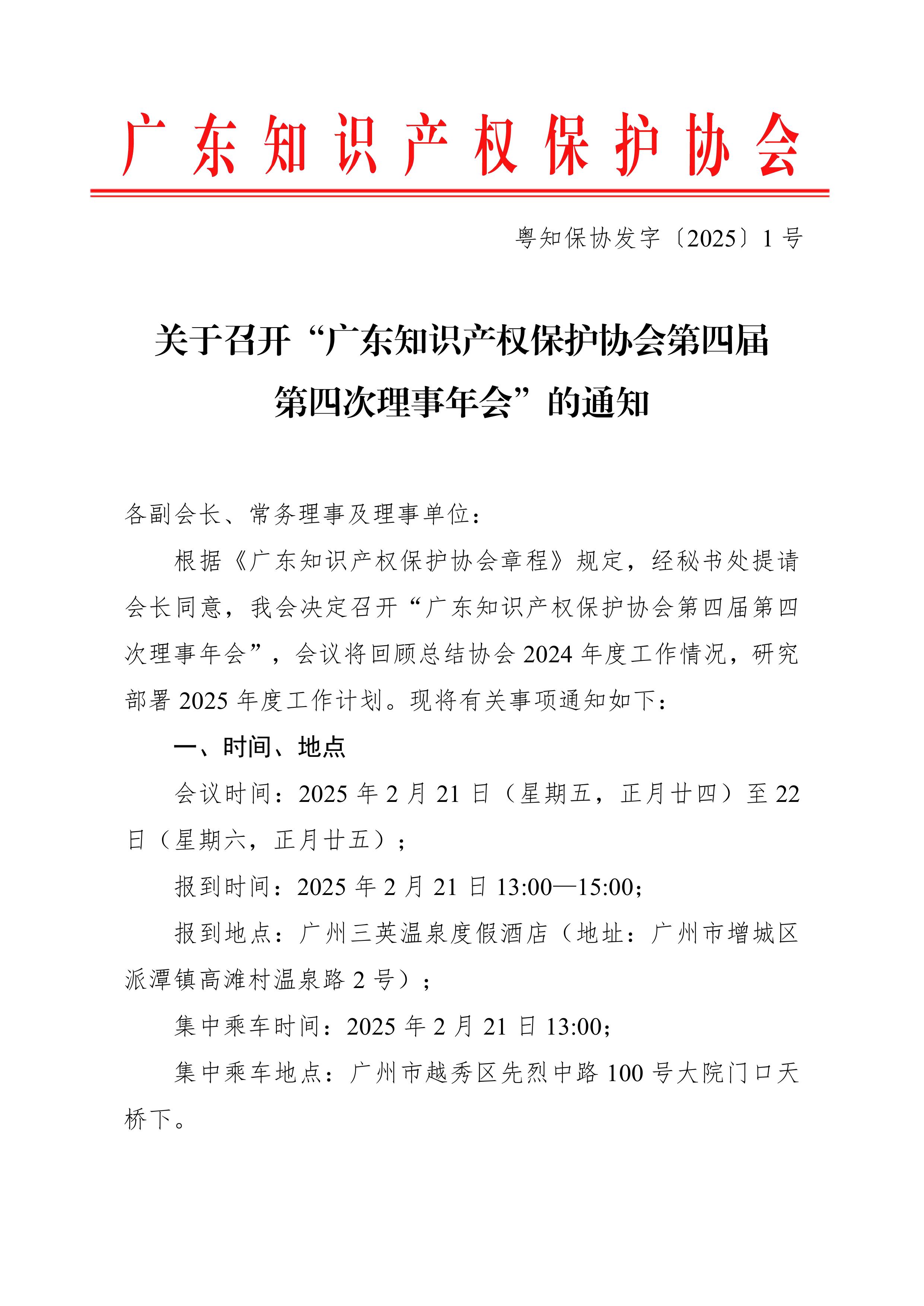 粤知保协发字〔2025〕1号-关于召开“广东知识产权保护协会第四届第四次理事年会”的通知