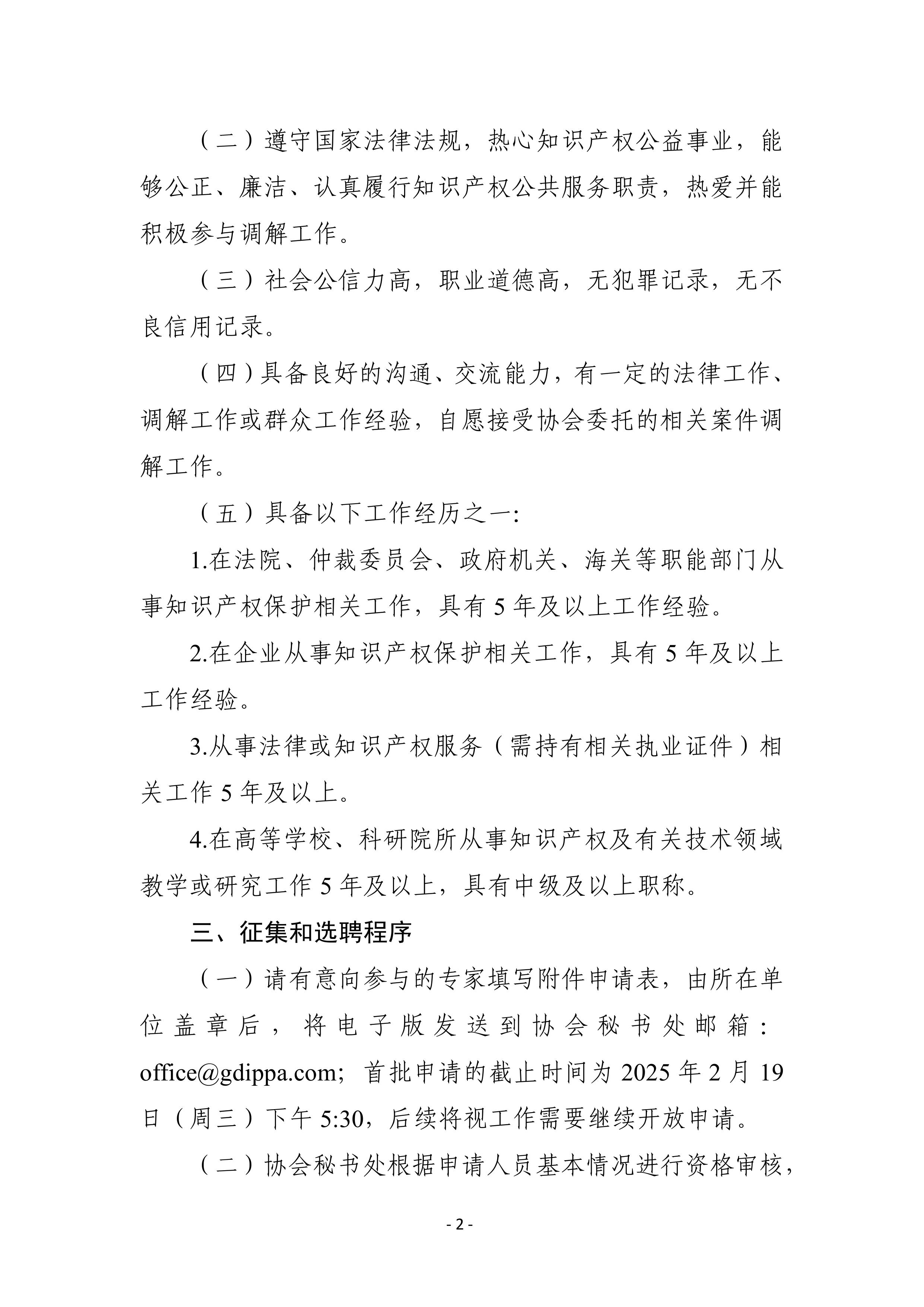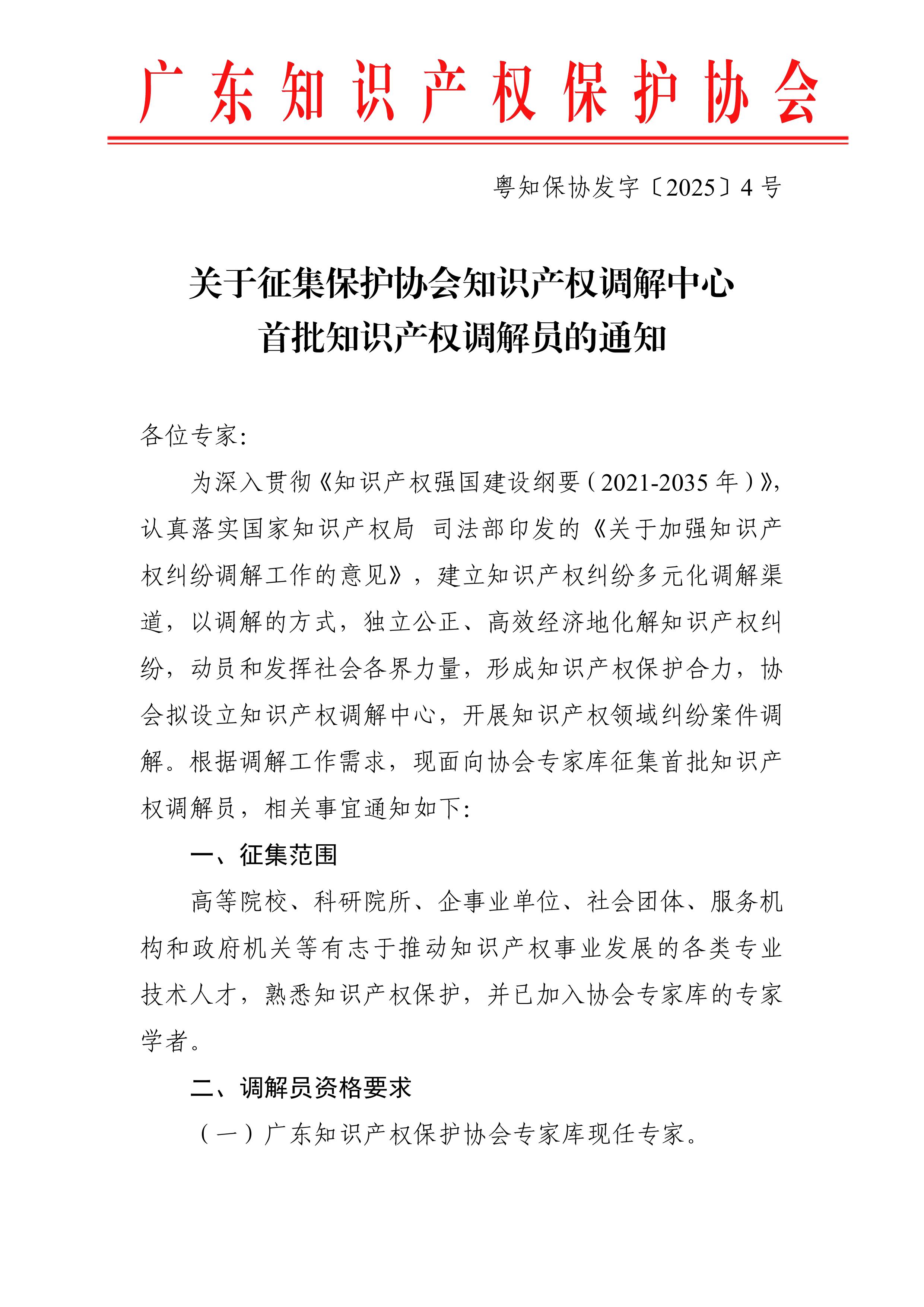 粤知保协发字〔2025〕4号-关于征集保护协会知识产权调解中心首批知识产权调解员的通知