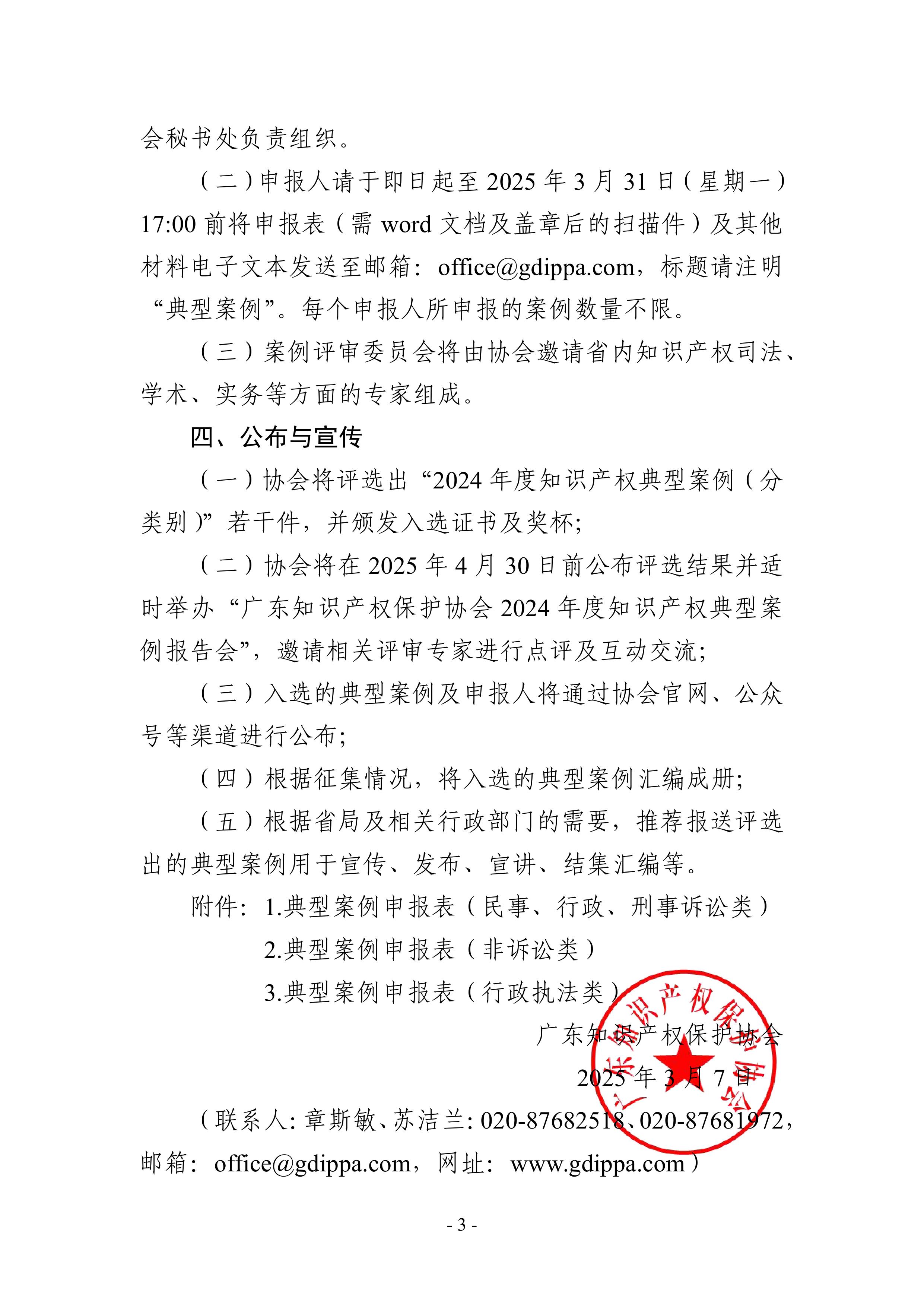 粤知保协发字〔2025〕5号-关于征集、评选2024年度知识产权典型案例的通知