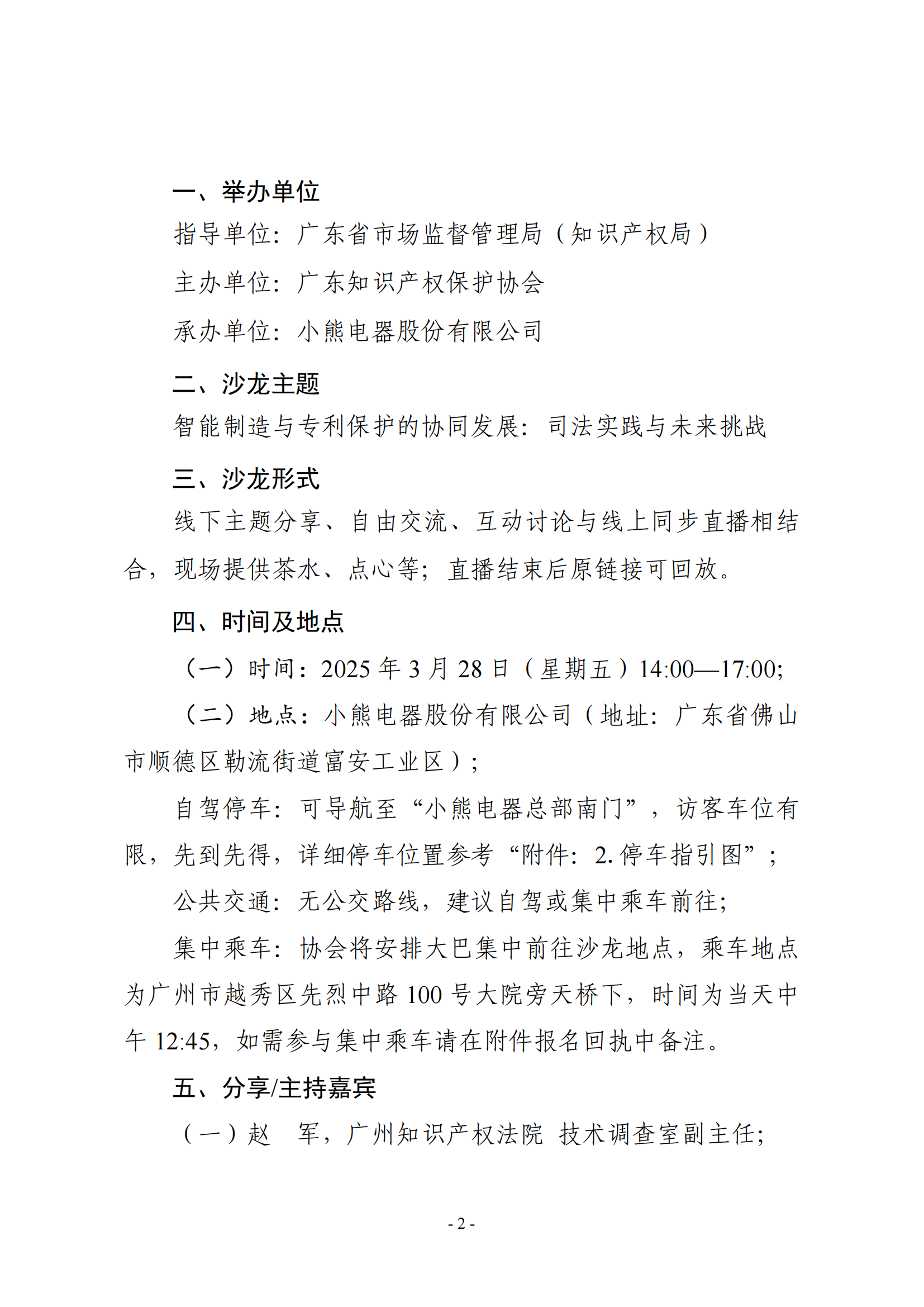 粤知保协发字〔2025〕9号-关于举办第五十八期“广东知识产权主题沙龙——智能制造与专利保护的协同发展:司法实践与未来挑战”的通知