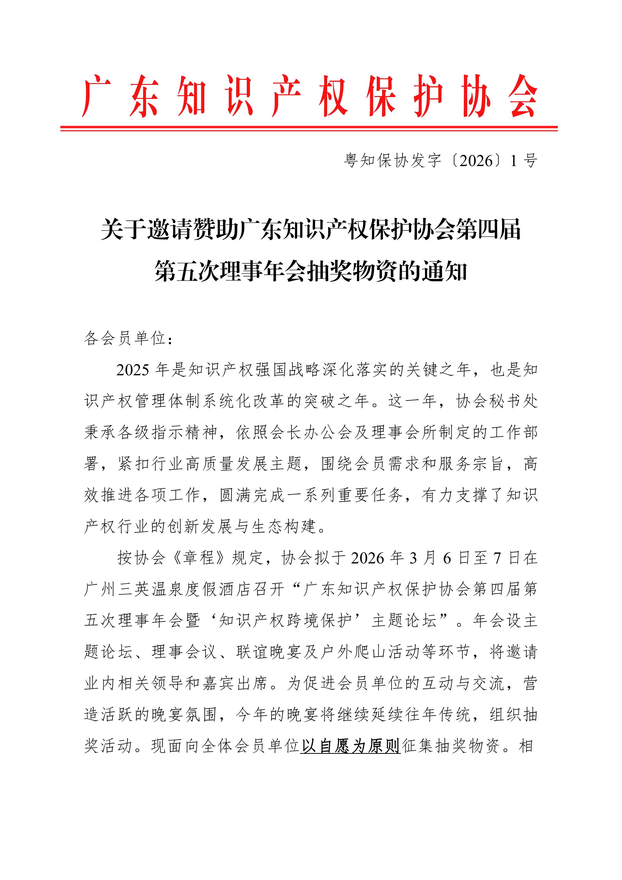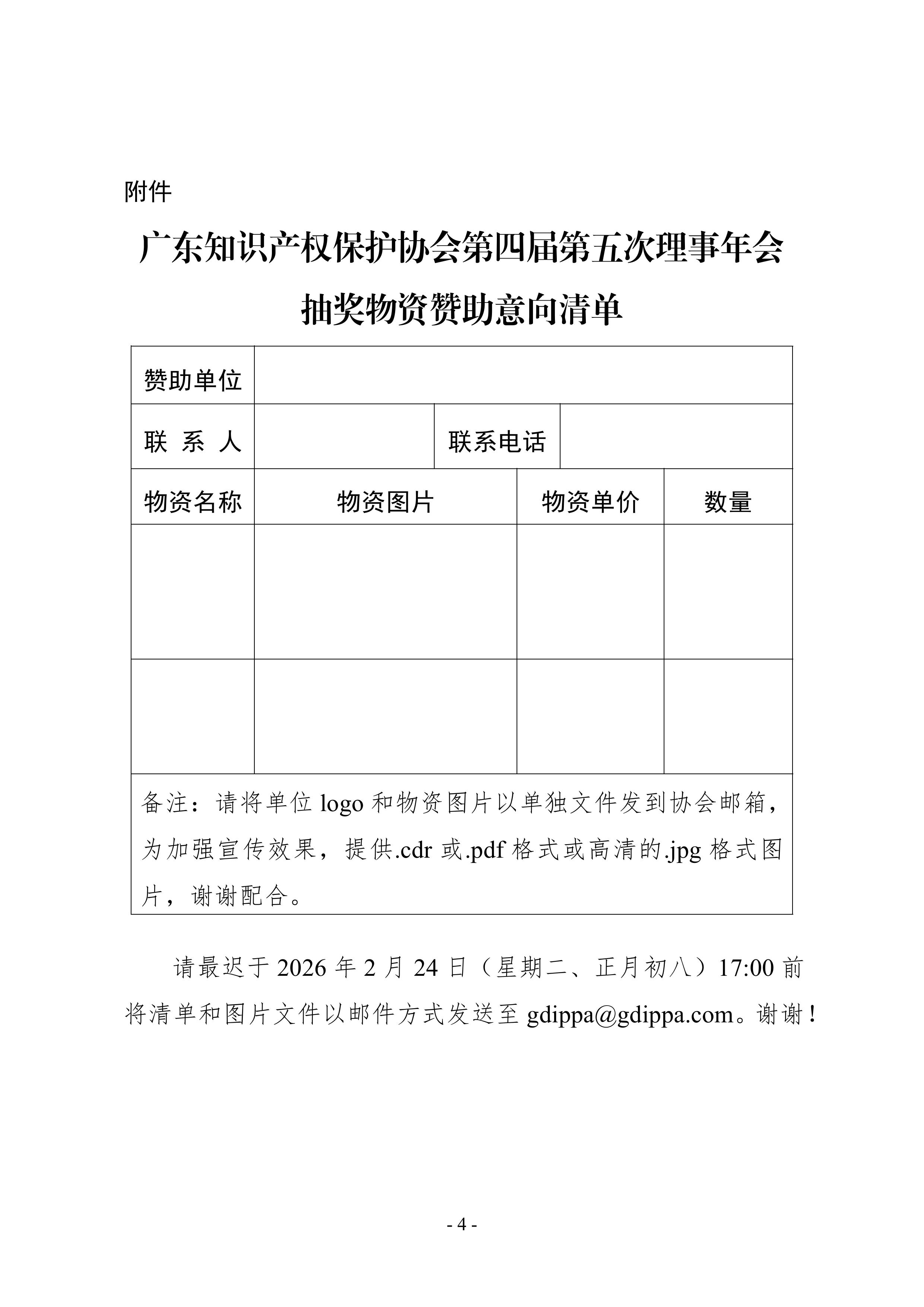 附件:广东知识产权保护协会第四届第五次理事年会抽奖物资赞助意向清单