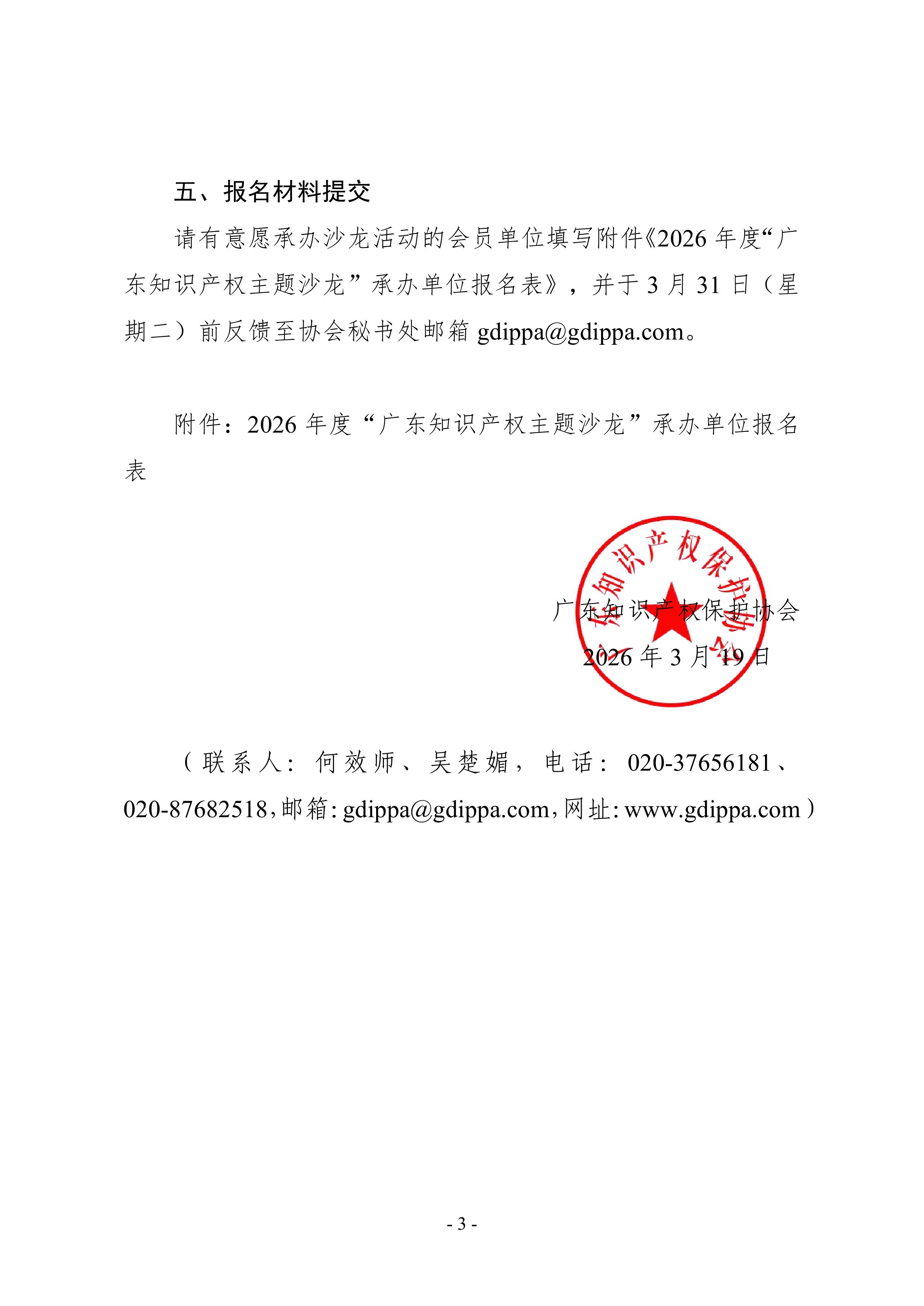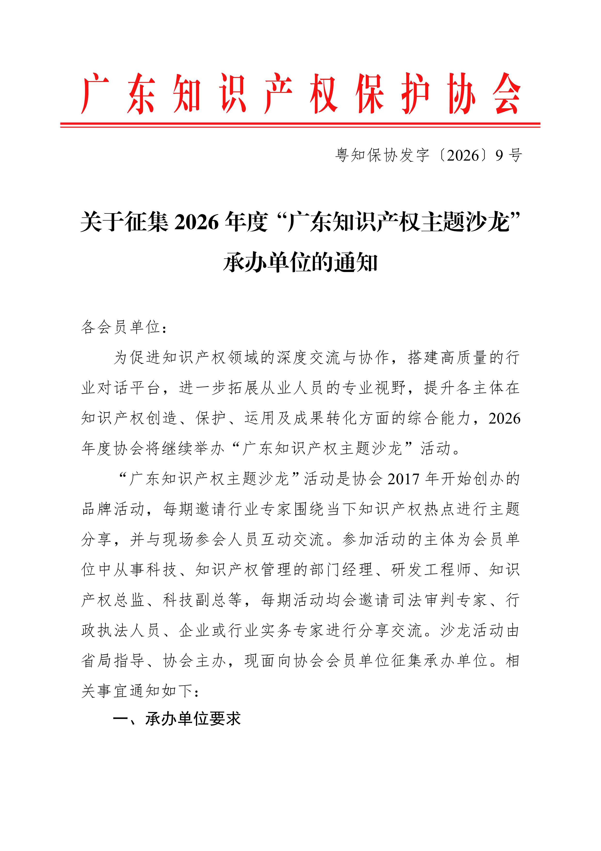 粤知保协发字〔2026〕9号-关于征集2026年度“广东知识产权主题沙龙”承办单位的通知